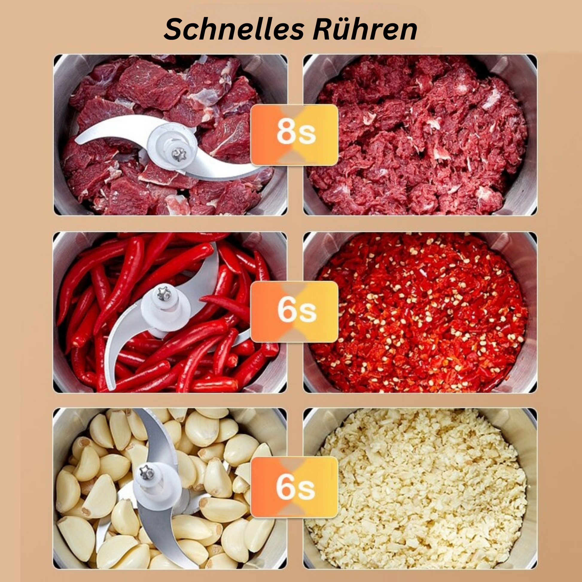 ✔ Einfach zu bedienen - Die Zubereitung von Speisen mit diesem Grindzilla™️ ist super einfach! Legen Sie einfach die vierschneidige Klinge in die Schüssel, geben Sie die Zutaten hinein, drücken Sie die Taste, und alle Zutaten werden im Handumdrehen zerkleinert und kommen in kleinen Stücken heraus!